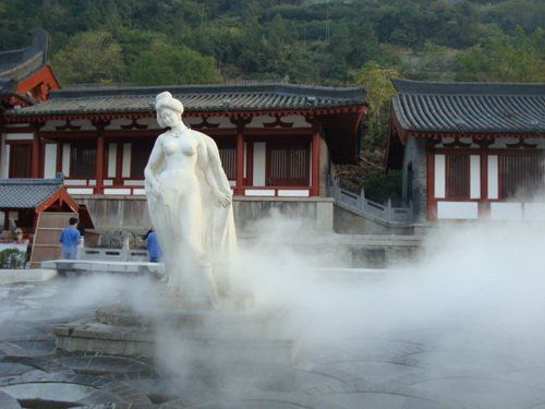 西安東約30公里的臨潼驪山腳下北麓,是中國著名的溫泉勝地。據歷史記載,這里的溫泉大約發現在3000年前的西周時代。漢代曾在這里建造帝王貴族的行宮別墅。唐代建有富麗堂皇的“華清宮”。“華清池”由此得名。唐朝第七個皇帝玄宗每年攜帶楊貴妃到此過冬沐浴在此賞景。根據科學檢測,驪山溫泉水質屬低礦化、弱堿性、中等放射性泉水,故又稱硅水、氟水和放射性氨水。這些均達到了康養用水的標準,故有“自然之經方,天地之元氣”的美稱。由于溫泉神奇的功效,贏得帝王們的特別喜好,并形成了一種專供帝王享用的傳統特權。
