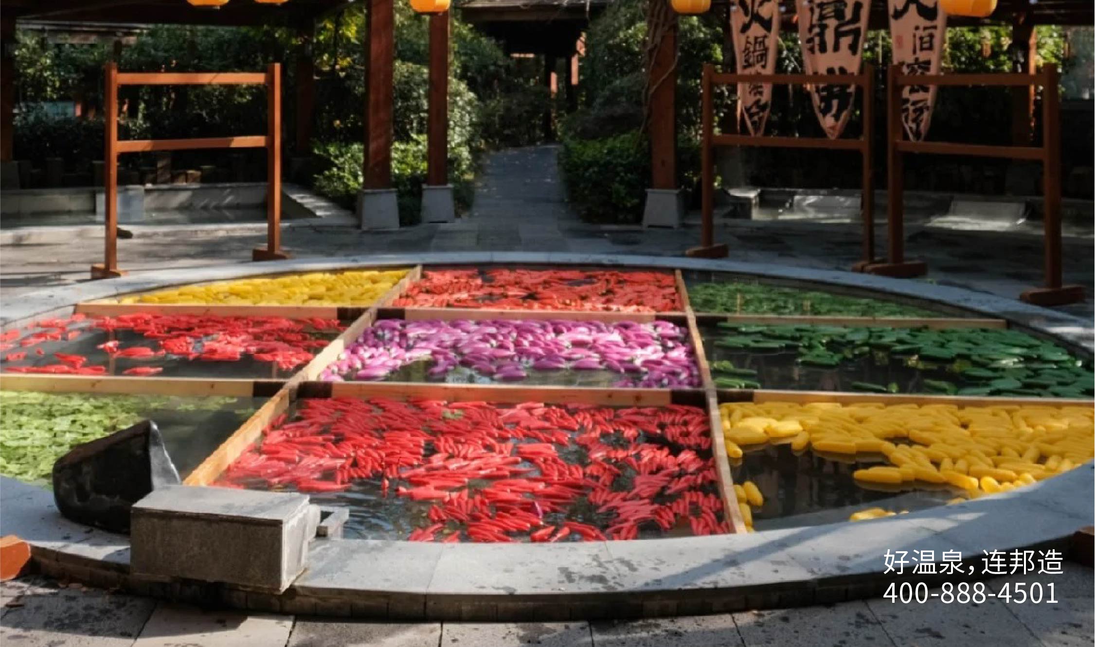 火鍋與溫泉,從來都是解決積郁最好的選擇。吃火鍋作為一種中國傳統美食,蘊含著濃厚的文化底蘊,深受人們喜愛?;疱仠椎臒釟怛v騰,與鮮美食材的碰撞,帶來的不僅僅是味覺上的享受,更是一種心靈上的愉悅感。泡溫泉是一種非常流行的養生、社交方式,經常泡一泡溫泉可以達到一個很好的緩解壓力的效果。也可以使全身處于一個放松的狀態,緩解長時間高負荷工作導致自身出現的疲憊問題。全身心的放松,融洽在那一團暖氣氤氳中,任你有百種疲憊,都能被一秒治愈。當溫泉與火鍋結合在一起,會產生什么樣的化學反應?