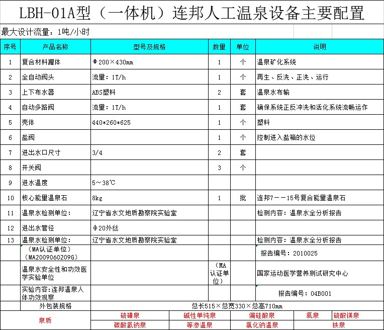 可應(yīng)用泉質(zhì):1.硫磺泉 2.堿性單純?nèi)?span style="white-space: pre;"> 3.偏硅酸泉 4.氡泉 5.硫酸鎂泉 6.碳酸氫鈉泉 7.等滲溫泉 8.氯化鈉溫泉 9.鐵泉 。